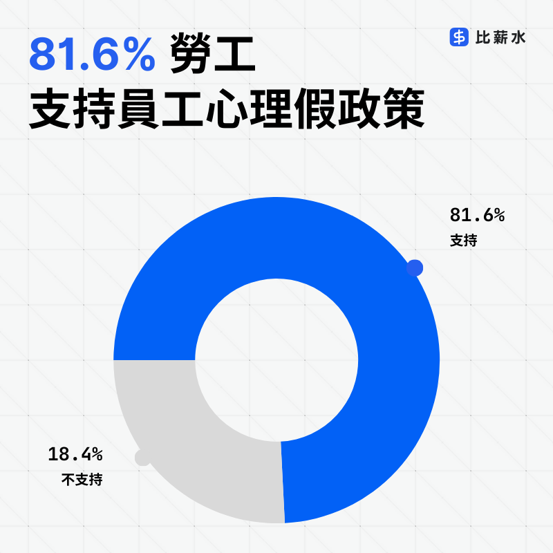 調查顯示,81.6% 受訪者支持設立心理假制度。也就是說,每 10 位勞工中,就有超過 8 位支持設立心理假制度。